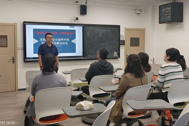 11月1日下午,beat365中文官方网站各教研室围绕本科毕业论文指导开展主题教研活动,对本科毕业论文指导过程中存在的问题及解决方法进行探讨。
