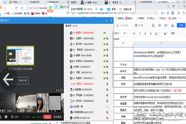由于疫情防控需要,按照学院安排,beat365中文官方网站法语系2021级《基础法语I》期末考试延迟至2021-2022学年第二学期初进行。为加强学生对本学期该课程所学知识的巩固,解决学生在复习过程中遇到的问题,任课老师在线上以不同形式为学生进行答疑辅导。主要采取如学习通课程平台讨论答疑、qq群聊天解答、在线直播答疑辅导等形式。