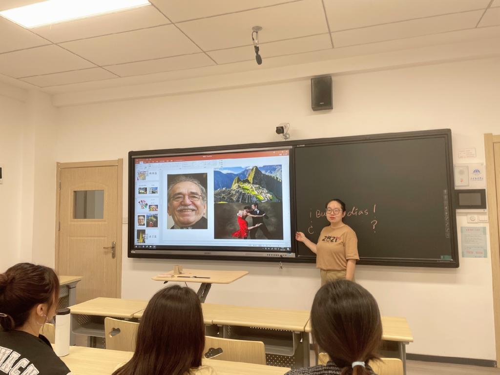 活动开始,朱老师首先对全体新生的到来表示热烈的欢迎和衷心的祝贺,向学生介绍了西班牙语的发展历程和分布概况,展示了西班牙的建筑、美食和节日等,此外还介绍了拉丁美洲国家的政治、经济和文化,让同学们在教室中体会到了西班牙语国家的魅力。之后,朱老师从专业历史及现状、培养目标、课程设置、专业要求、就业方向、优秀毕业生展示等多角度对西班牙语专业进行了较为详尽的介绍,分析了当今的就业现状和前景,对语言的学习也提出了一些建议。