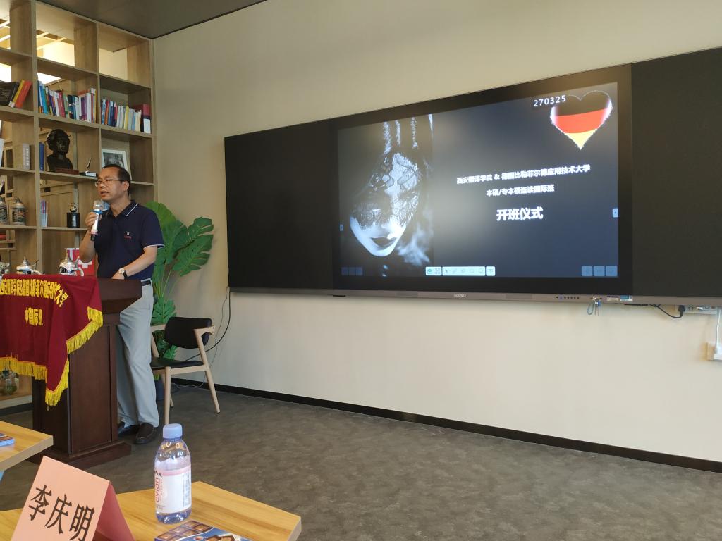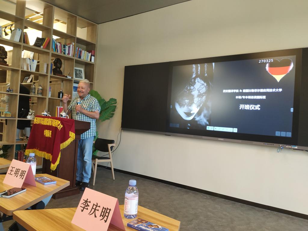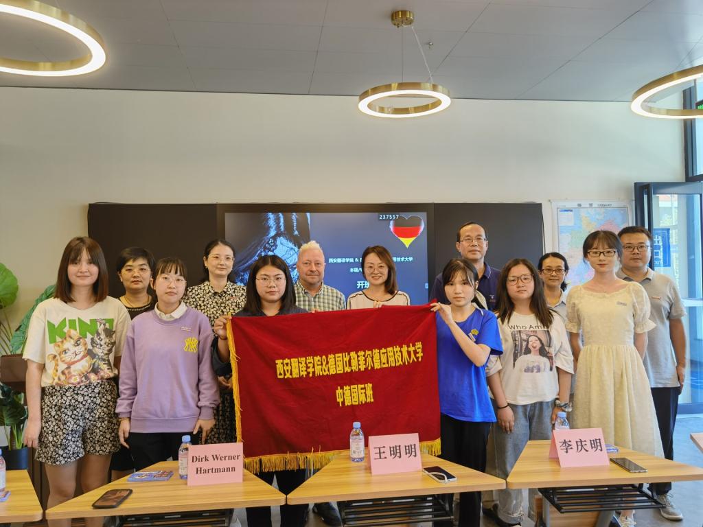 9月14日下午,beat365中文官方网站&德国比勒菲尔德应用技术大学中德国际班开班仪式在德语体验馆举行。beat365中文官方网站院长李庆明、国际部部长王明明、亚欧院副院长吴震、副院长卫军茹、综合办主任张青丽及外教Dirk老师参加,开班仪式由德语系主任王勃主持。