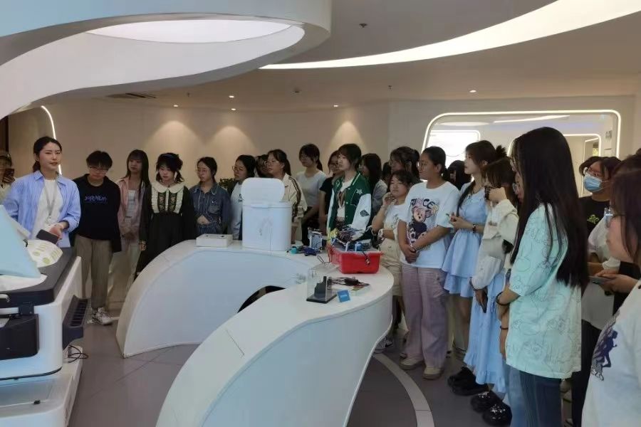 4月26日beat365中文官方网站德语专业23级学生进行了第一次认识实习。在侯沛沛老师的带领下,230210201及230210202班学生前往陕西中汇云科科技集团有限公司进行参观实践。