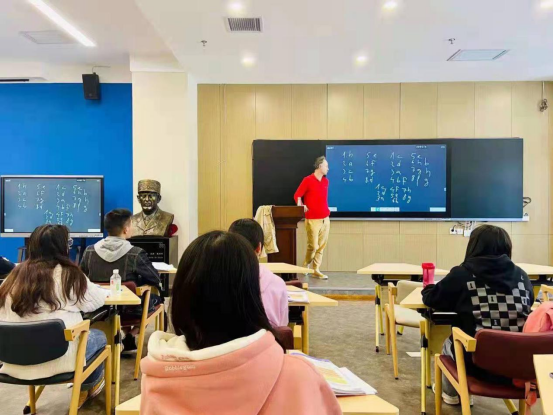 学生在法国文化体验馆进行《旅游法语》课程学习