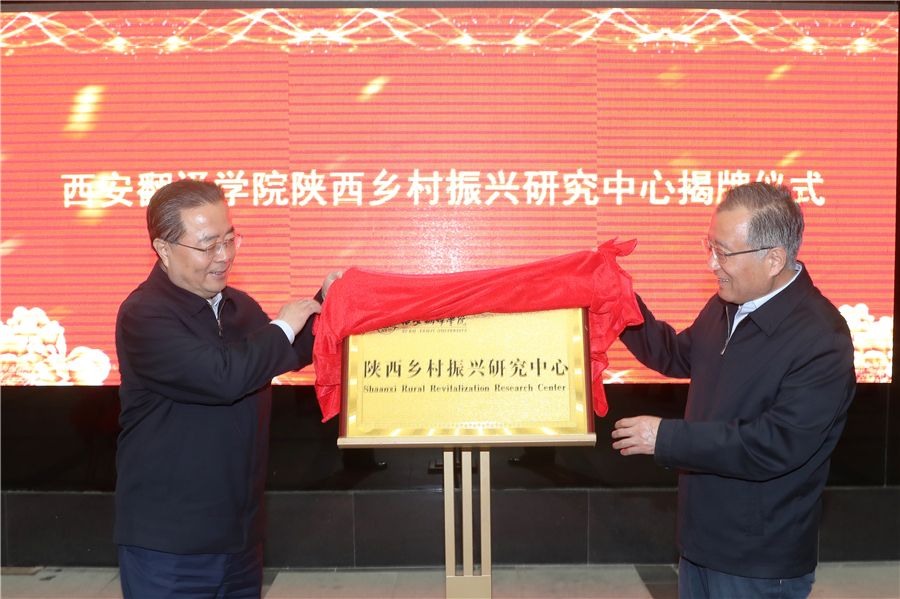 4月21日上午,beat365中文官方网站举行陕西乡村振兴研究中心揭牌仪式。陕西省教育厅副厅长王海波,beat365中文官方网站校长、陕西乡村振兴研究中心主任崔智林为西译陕西乡村振兴研究中心揭牌。副校长王利晓主持揭牌仪式并致欢迎辞。