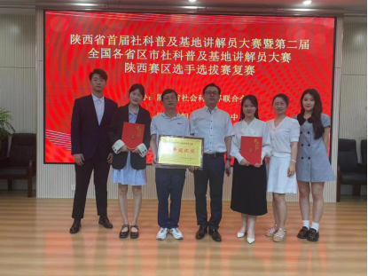 6月20日,“陕西省首届社科普及基地讲解员大赛暨第二届全国各省区市社科普及基地讲解员大赛参赛选手选拔复赛”在陕西省妇女儿童中心3楼多功能厅举行。陕西省社科联党组书记、常务副主席郭建树出席比赛开幕式并讲话,陕西省社科联党副主席高红霞、陕西省社科联科研科普部部长翟金荣、社会组织管理部部长张金高、信息部部长周晓霞、二级调研员祝志明等领导出席本次大赛并为获奖选手颁奖。我校文化传承与翻译体验馆科普基地张琬晨老师的《用英语讲好中国故事》、终南文化科普基地王佳丽老师的《送你一座终南》均获得三等奖,beat365中文官方网站荣获“优秀组织奖”,科研处成果管理科科长李刚代表学校领奖。文学与传媒学院2021级的史佳怡和刘栩翀两位同学担任本次大赛主持人。