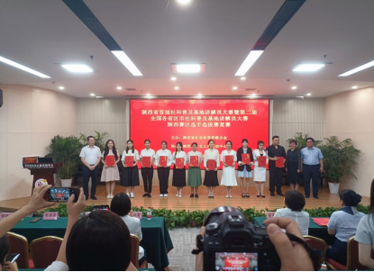 陕西省社科联副主席高红霞、科研科普部部长翟金荣为“优秀组织奖”获奖单位颁奖