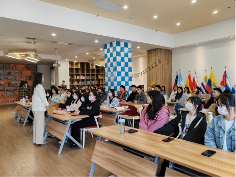 留学顾问薛老师对西班牙语在国际中的应用进行了介绍,结合自己亲身情况分享了留学择校、选专业等方面的经验对同学们留学申请经验、留学生活与经历等。强调留学的注意事项及建议,强调申请过程中的个人主动性、需理性地进行选择与计划,包括努力达到申请条件、提前了解相关国家和单位的额外要求、注意材料提交要求等,并重点介绍了格兰纳达国际交流项目。老师的讲解使同学们清楚了解格兰纳达留学项目的相关事项。