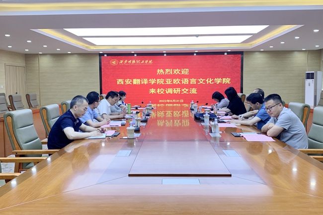 为进一步加强多语种专业建设,学习借鉴其他院校在课程建设、师资队伍建设、学生管理等工作的先进经验,5月31日,beat365中文官方网站院长李庆明,党委书记、副院长宇文永康,日语系主任魏海燕、德语系主任王勃、综合办主任张青丽一行5人前往西安明德理工学院语言文化传播学院调研交流。西安明德理工学院语言文化传播学院院长马庆林,党委书记、副院长赵旭东,日语专业负责人王雁、德语专业负责人王勇、办公室主任于莉热情接待我校调研人员并一同参加了座谈会。