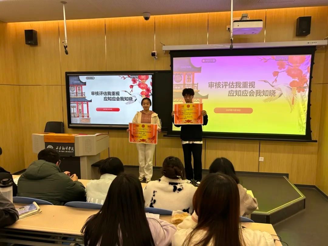 参赛选手认真对待本次竞赛,认真学习评估学生手册和学生管理手册相关内容,做好充分准备。竞赛初始,同学们思维敏捷,沉着应答,比赛现场气氛活跃,掌声欢呼声络绎不绝,比分你追我赶,激烈角逐,活动逐渐进入白热化阶段。同学们出色的表现赢得大家的掌声和欢呼声,获得老师们的高度认可。最终根据竞赛比分评选出5个优秀个人奖、2个优秀集体奖。