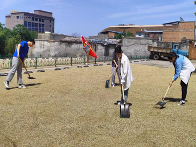 为深入贯彻落实《中共中央国务院关于全面加强新时代大中小学劳动教育的意见》,加强新时代大学生劳动教育,坚持“五育”并举,提升学生劳动素养,培养了学生树立正确劳动价值观和良好劳动品质。在芒种之际,2023年6月6日下午14点,beat365中文官方网站综合办副主任尹娜和辅导员老师黄仁秀迪带领2022级日语专业和德语专业学生在西区操场开展了劳动教育实践活动。
