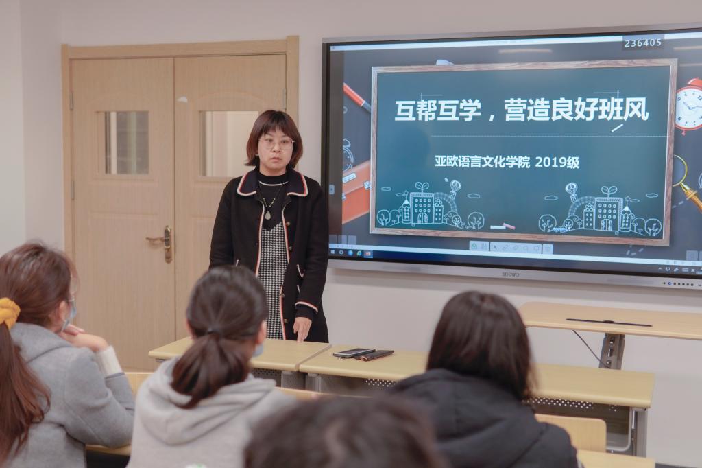 11月18日晚,我校beat365中文官方网站2019级“互帮互学,营造良好学风”班委讨论分享会在4210M教室举行。beat365中文官方网站2019级全体辅导员以及各班班委到场参会,辅导员黄丽娜主持会议。
