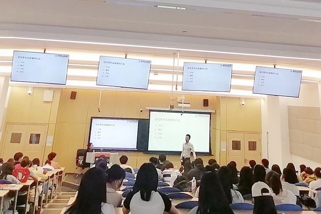 座谈会之后,曾河在4109T教室开展了宣讲会,beat365中文官方网站各专业学生代表积极参会。宣讲会上,曾河从社会对小语种的需求角度,鼓励广大小语种专业学生务必树立信心,做好职业规划,学好专业知识,提高各项技能,为将来步入社会打好基础。随后他介绍了星语众教育的发展历程、教学环境与师资、人才培养体系、薪资与福利、晋升空间与发展等事宜。他表示,星语众教育面向日、韩、法、德、西小语种,以商务与考级为一体,针对小语种专业教育和培训,给予广大小语种专业学生提供广阔舞台来实践所学专业知识,他欢迎大家加入星语众教育,在不断的教学实践和技能锻炼中,充分应用专业知识、强化专业知识,努力成长为小语种领域的精英人才。