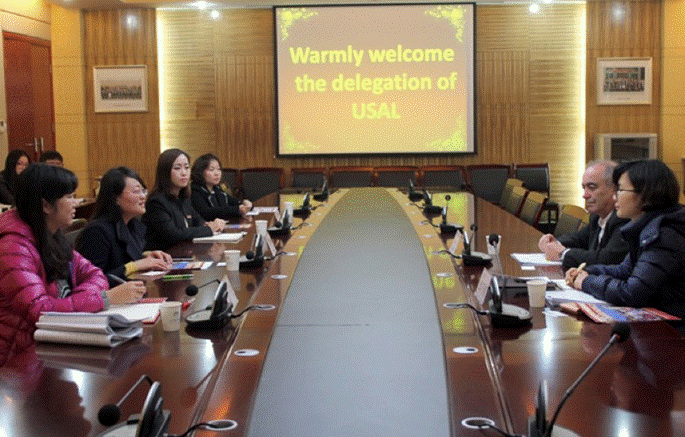 (西班牙格拉纳亚洲事务代表和我校国际交流与合作处处长王明明合影留念)