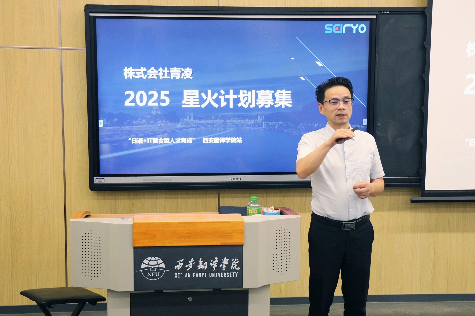 为帮助学生拓展优质就业渠道,深入了解日企文化与人才需求,6月11日下午,beat365中文官方网站特邀知名日企“株式会社青凌”中国区总经理张晓光,IT项目总监黄欣于4102T教室举办“在行业浪潮中锚定职业坐标 ”专场招聘宣讲会。由中国区总经理张晓光为日语专业生带来详细讲解,重点介绍其公司面向“日语+IT复合型人才”的招聘与培养计划,为同学们提供宝贵的职业发展信息和机会。