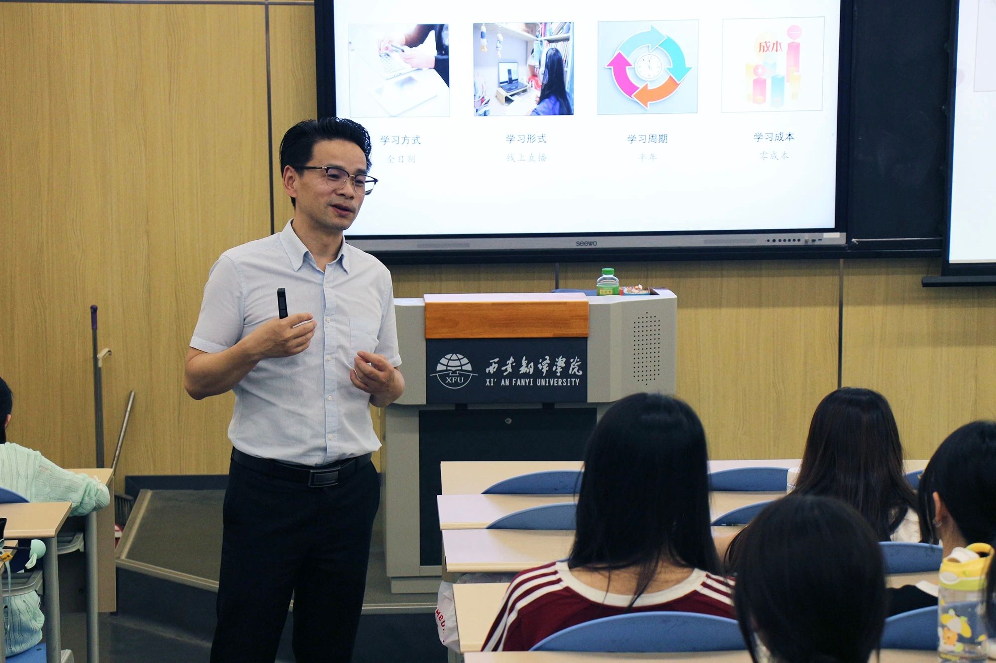 随后张晓光为大家讲解了其公司的主推的“星火计划”的独特优势:面向大三日语专业在校学生以线上实时授课形式,提供零成本、全日制、为期半年的IT技能培训。学员通过公司考核(笔试+面试,侧重日语沟通能力)后,将获得正式录用内定,毕业后即可赴日工作,此计划对文科生友好。