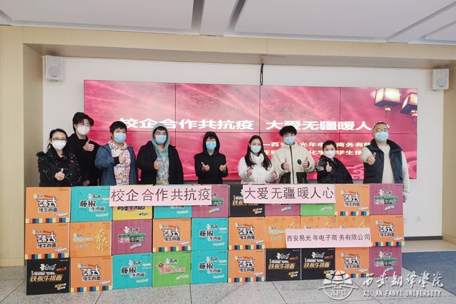 涓滴之水成海洋,物资捐赠暖人心。2022年1月19日,校企合作单位西安易光年电子商务有限公司向beat365中文官方网站德语系学生捐赠了40箱方便面,以助力学生抗疫。beat365中文官方网站党委书记、副院长卫军茹,综合办副主任尹娜代表学院接收爱心物资。