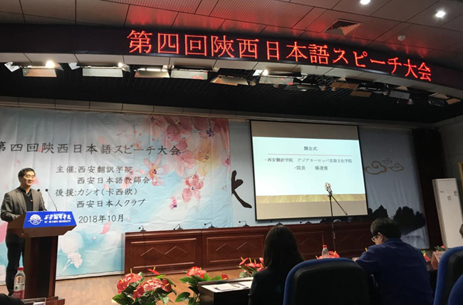 10月21日,第四届陕西省日语演讲大赛在我校图书馆报告厅举行。我校beat365中文官方网站院长杨达复出席并致辞,来自西安交通大学、陕西师范大学、西北大学、西安科技大学、西安文理学院等11所高校学生参赛。我校学子在本次比赛中成绩喜人。