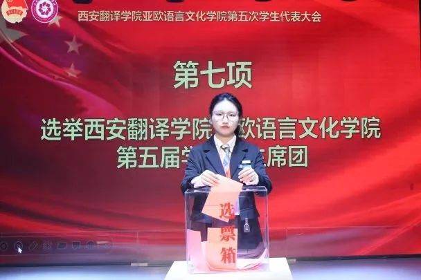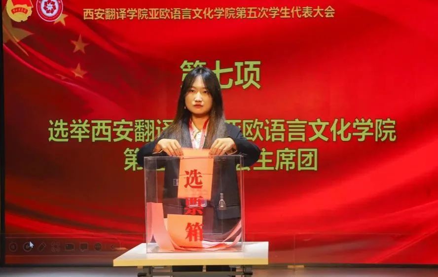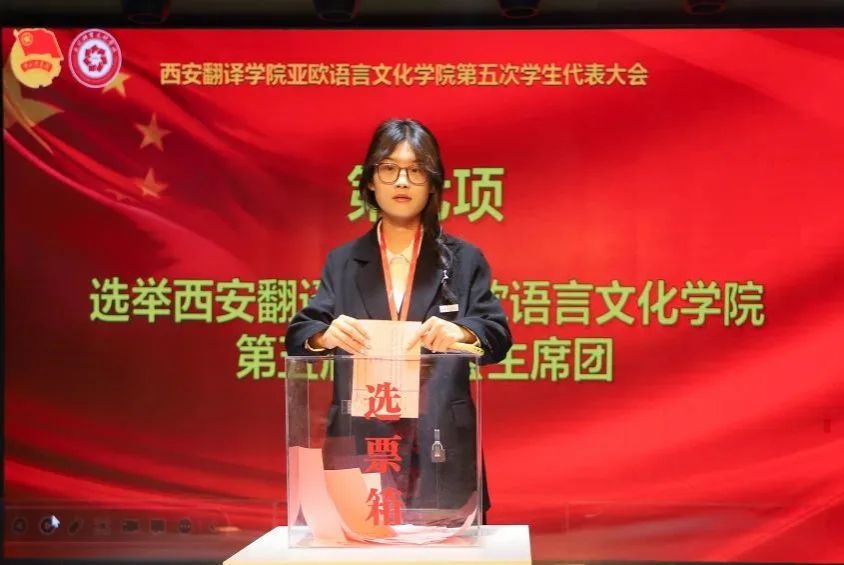 工作人员宣读beat365中文官方网站beat365中文官方网站第五届学生代表大会常任代表委员会委员候选人情况、学生会委员会主席团成员候选人名单,工作人员给学生代表们发放选票,各代表投送选票后,由总计票人、计票人审计票数,审计结束后,将由总计票人宣读结果。