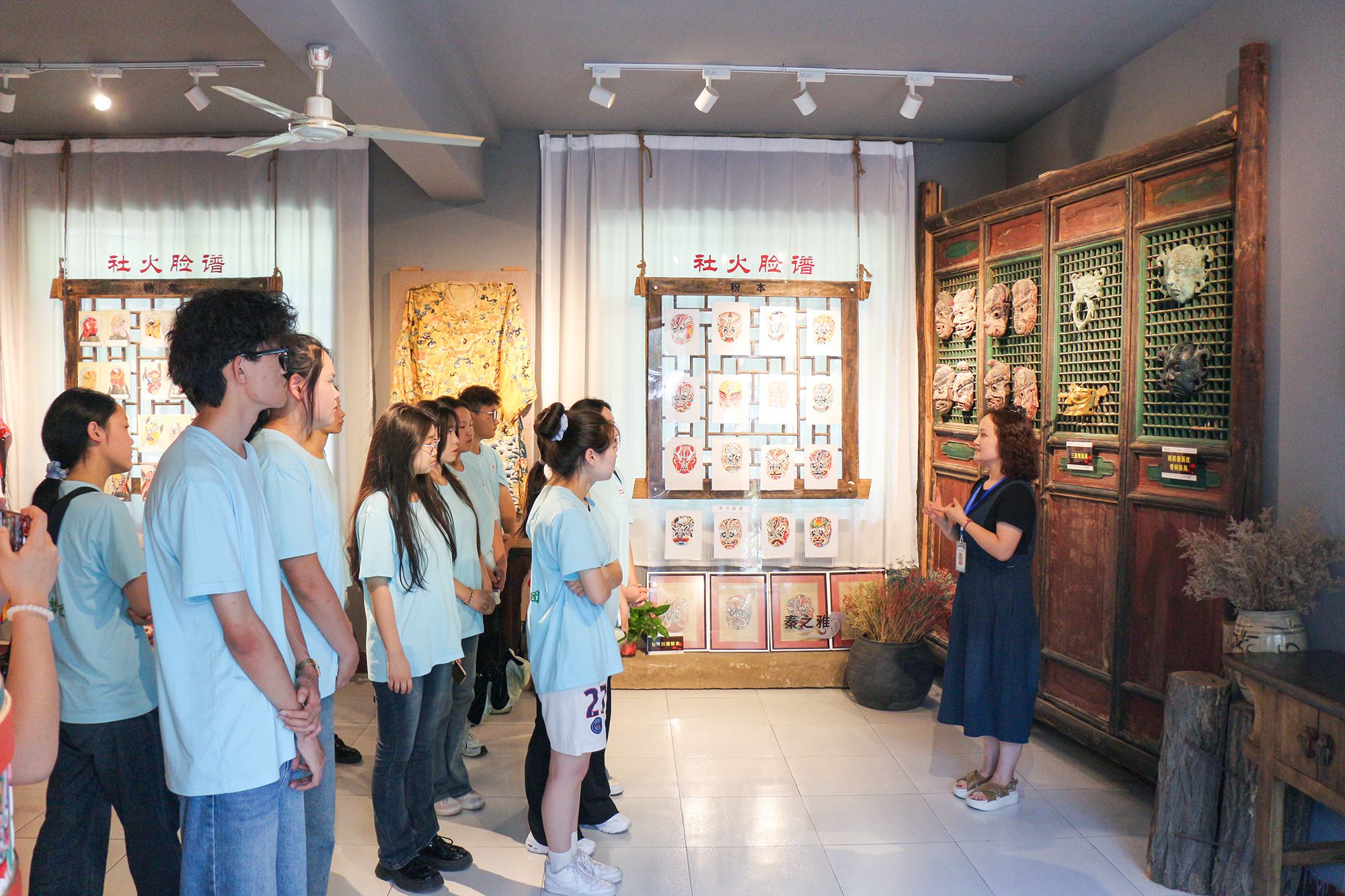 为深入学习贯彻习近平新时代中国特色社会主义思想,传承弘扬中华优秀传统文化、革命文化、社会主义先进文化。2024年7月11日,beat365中文官方网站三下乡社会实践团队“绿野助梦团”前往宝鸡市陈仓区非物质文化遗产——社火博物馆。通过实地参观和聆听讲解,对如何保护、研究、展示、传承、利用好陈仓区非遗文化等方面有了深入的了解。