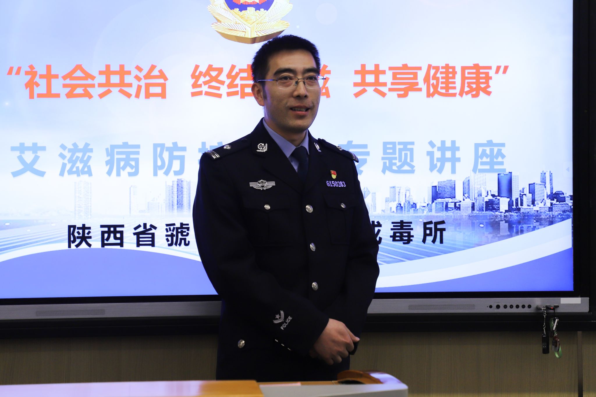 接下来由主治医师、二级警长任少炜带来预防艾滋病知识的主题宣讲,任警长深入浅出的讲解,大家如同在迷雾中找到了方向,懂得了如何在日常生活中预防艾滋病,全方位保护自己的生命安全。
