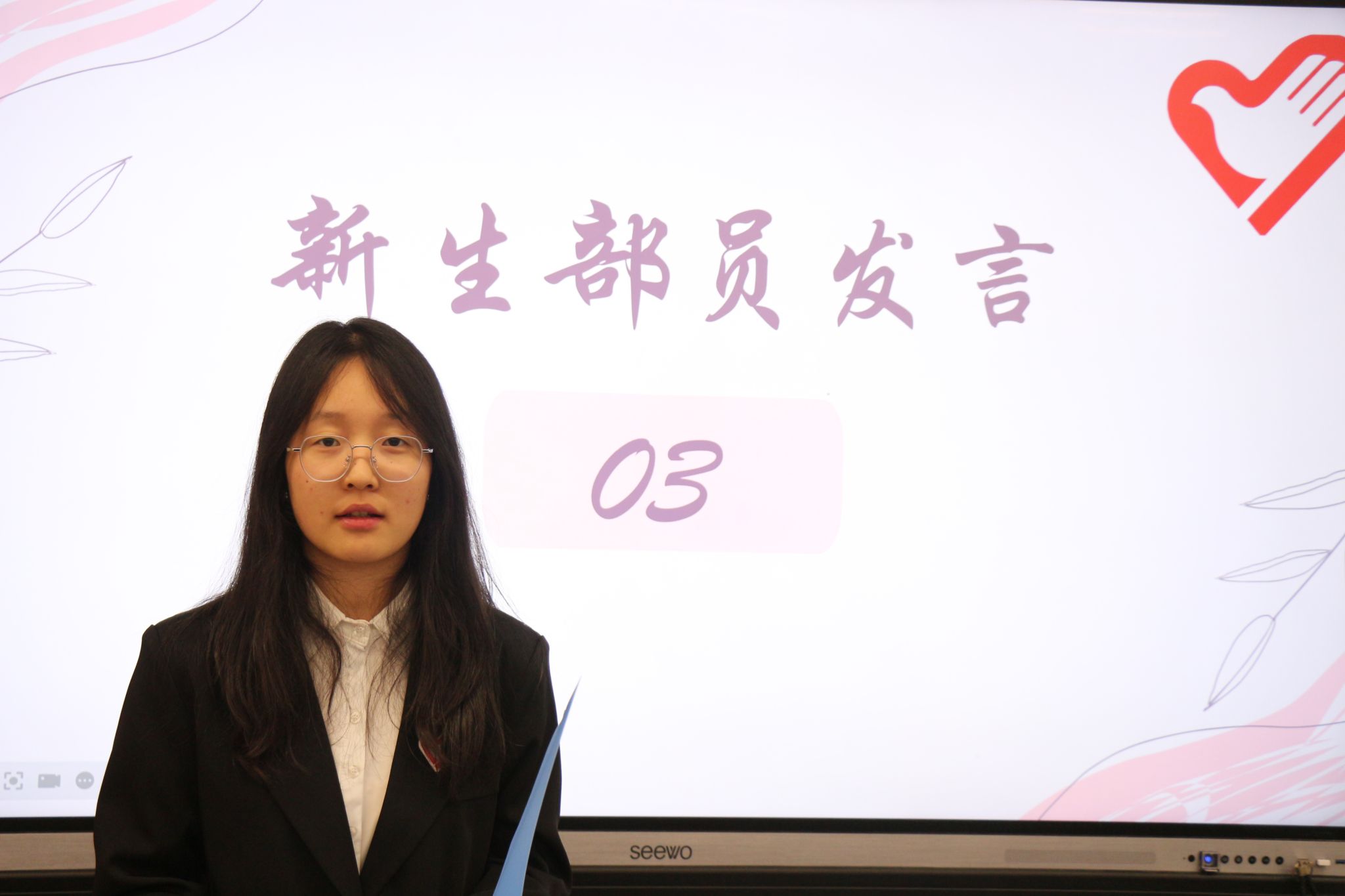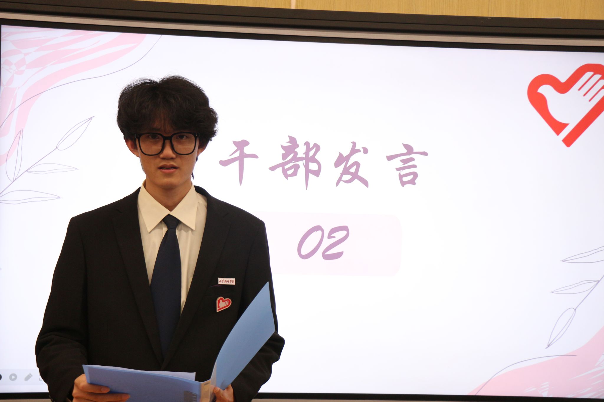 在beat365中文官方网站青年志愿者协会例会上,青年志愿者协会部员代表继干部代表分享后也分享了自己的感悟,作为部员满是荣耀喜悦,感恩前辈领航,beat365中文官方网站青年志愿者协会如启明星照亮大学生活,是温暖有梦的集体与成长港湾。部员承诺秉持高标准,向学长学姐学习,全身心投入任务。未来将铭记初心,用行动诠释青春,强调志愿服务带来成长与满足,呼吁更多青年践行志愿精神,为社会贡献力量,彰显青春因奉献而精彩 。