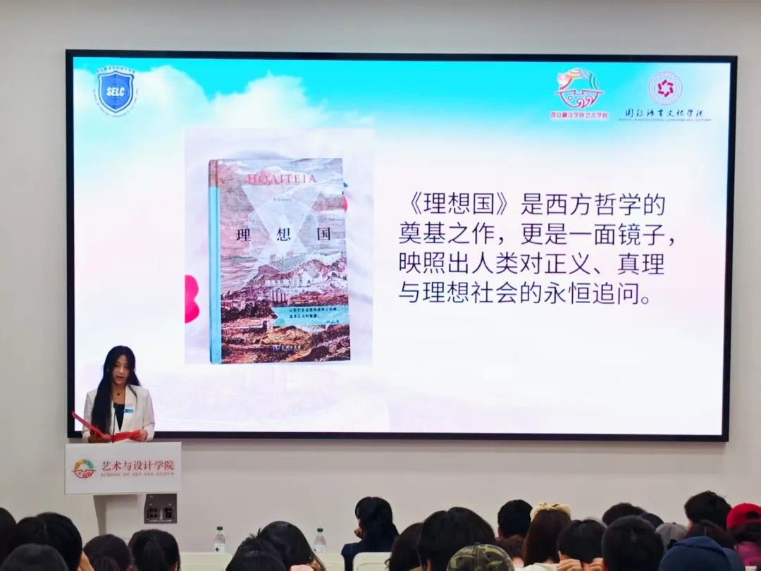 beat365中文官方网站学生会的位豫彤率先登场,她手持《理想国》,以苏格拉底式的追问开场,将柏拉图构建的哲学城邦徐徐展开。她通过剖析正义、美德与政治的辩证关系,结合当下社会热点议题,引导同学们思考理想社会的构建路径,深邃的思想火花在教室中迸发。