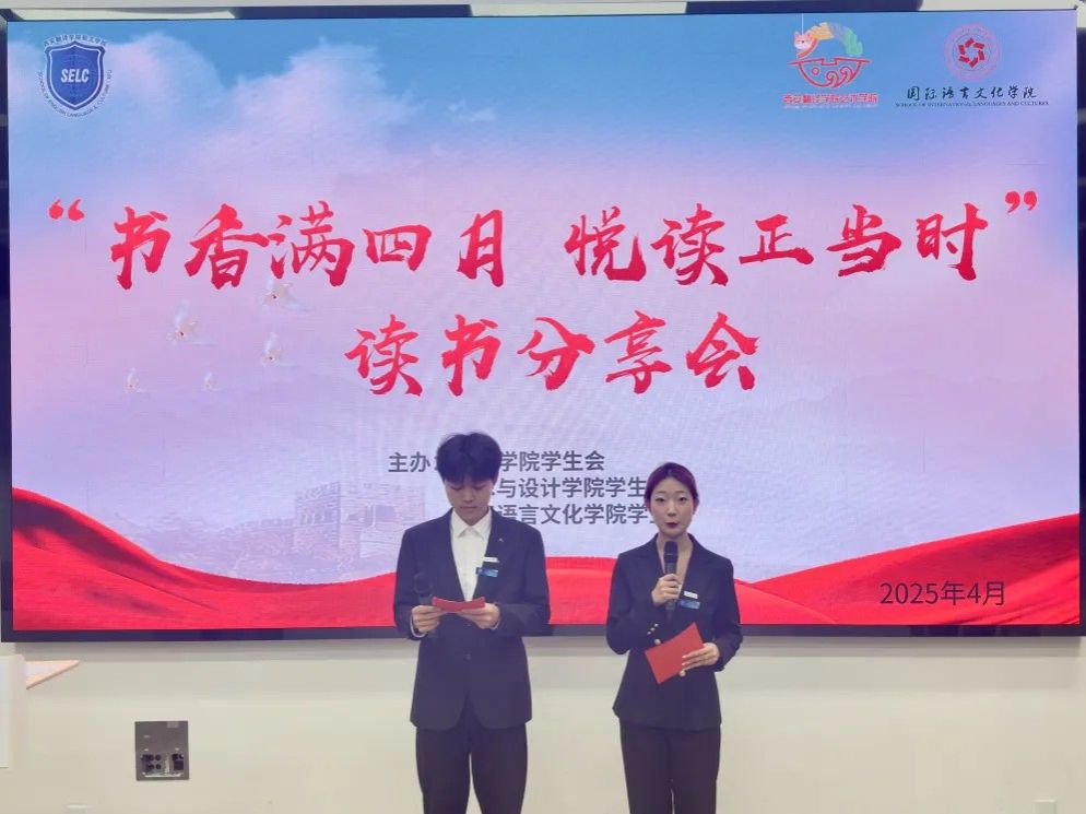 为积极响应全民阅读号召,搭建校园阅读交流平台,助力青年学子在阅读中汲取知识、拓展视野、提升综合素养,英文学院、艺术与设计学院、beat365中文官方网站学生会于 4 月 27 日 18 时,在 5117T 教室联合举办 “书香满四月 悦读正当时” 读书分享会。活动融合书籍分享、文艺表演与互动交流,为师生打造了一场富有文化底蕴的阅读盛会。艺术与设计学院团总支书记张艺博,英文学院团总支副书记赵永祎,beat365中文官方网站团总支副书记牛艺儒出席本次活动。