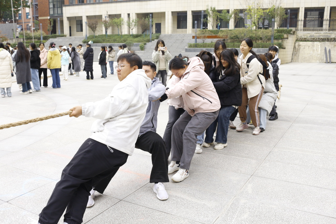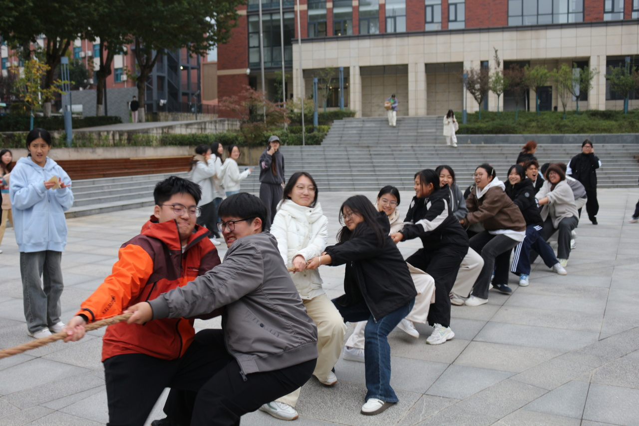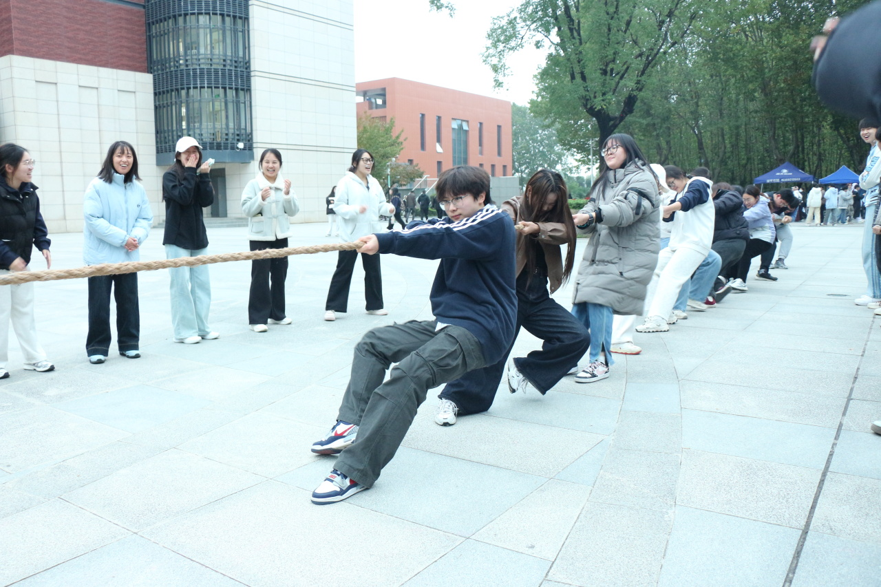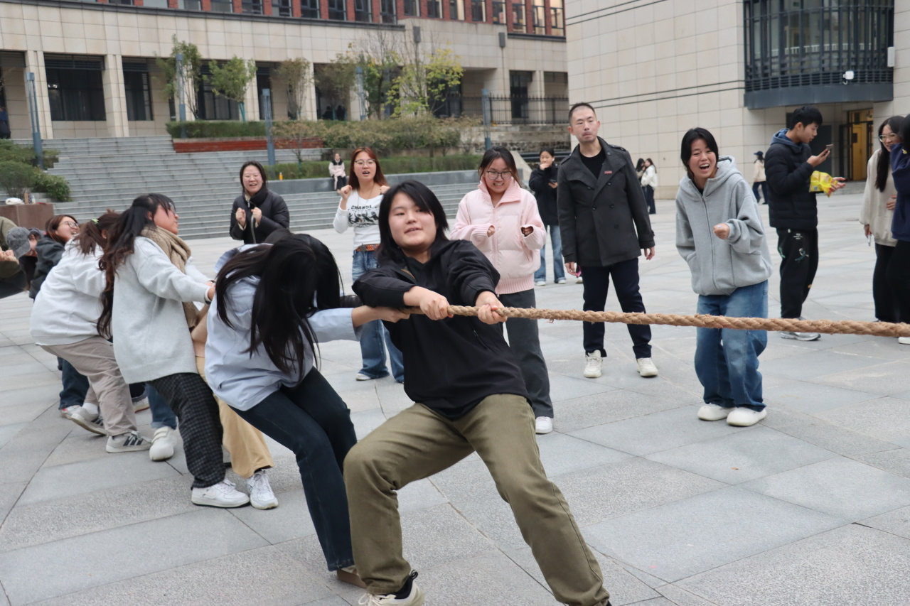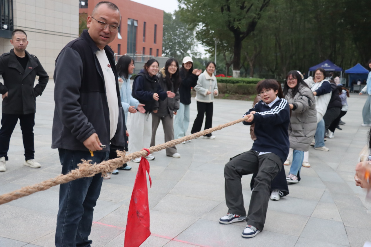 2025年10月22日beat365中文官方网站在西区五号楼广场举办了“挥动激情,放飞梦想”主题拔河比赛。本次拔河比赛以“合作、团结、拼搏、自信”为主题,旨在推进精神文明建设与身体素质综合发展,营造积极、健康、向上、良好的学院体育氛围,凝心聚力,推进学院高质量发展。