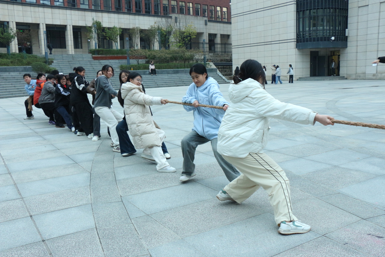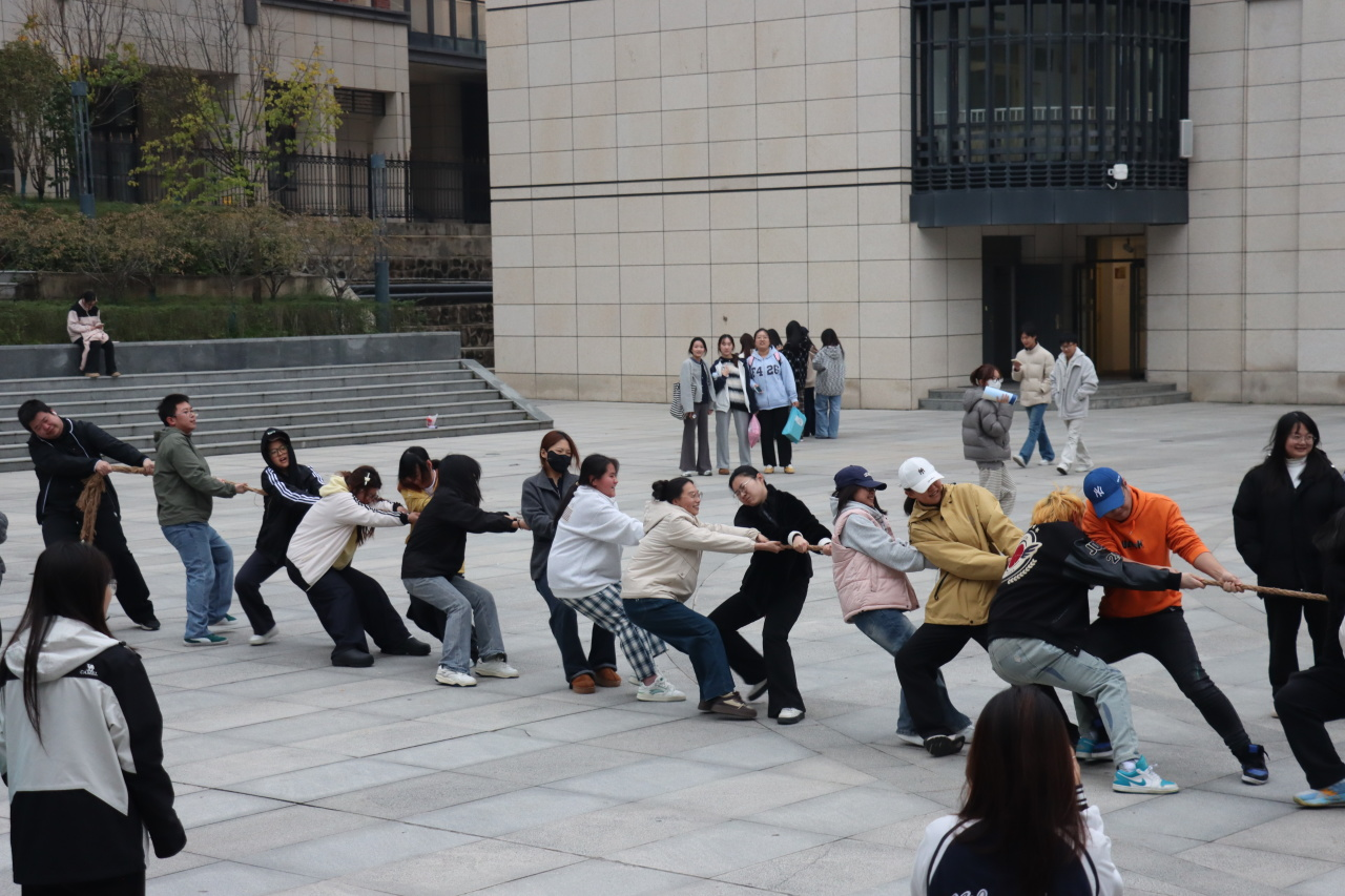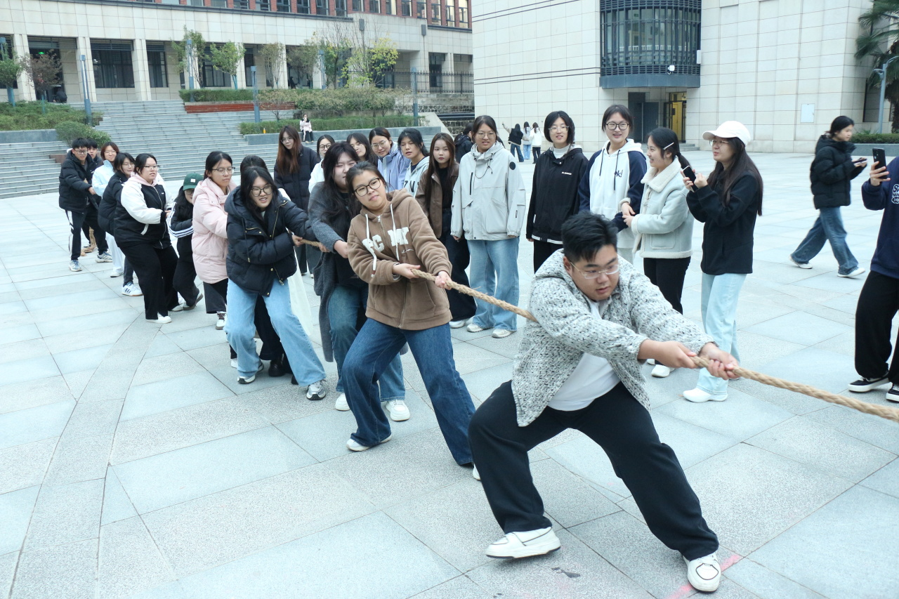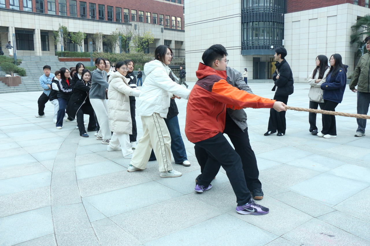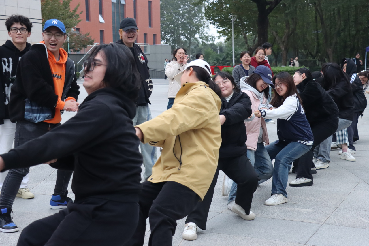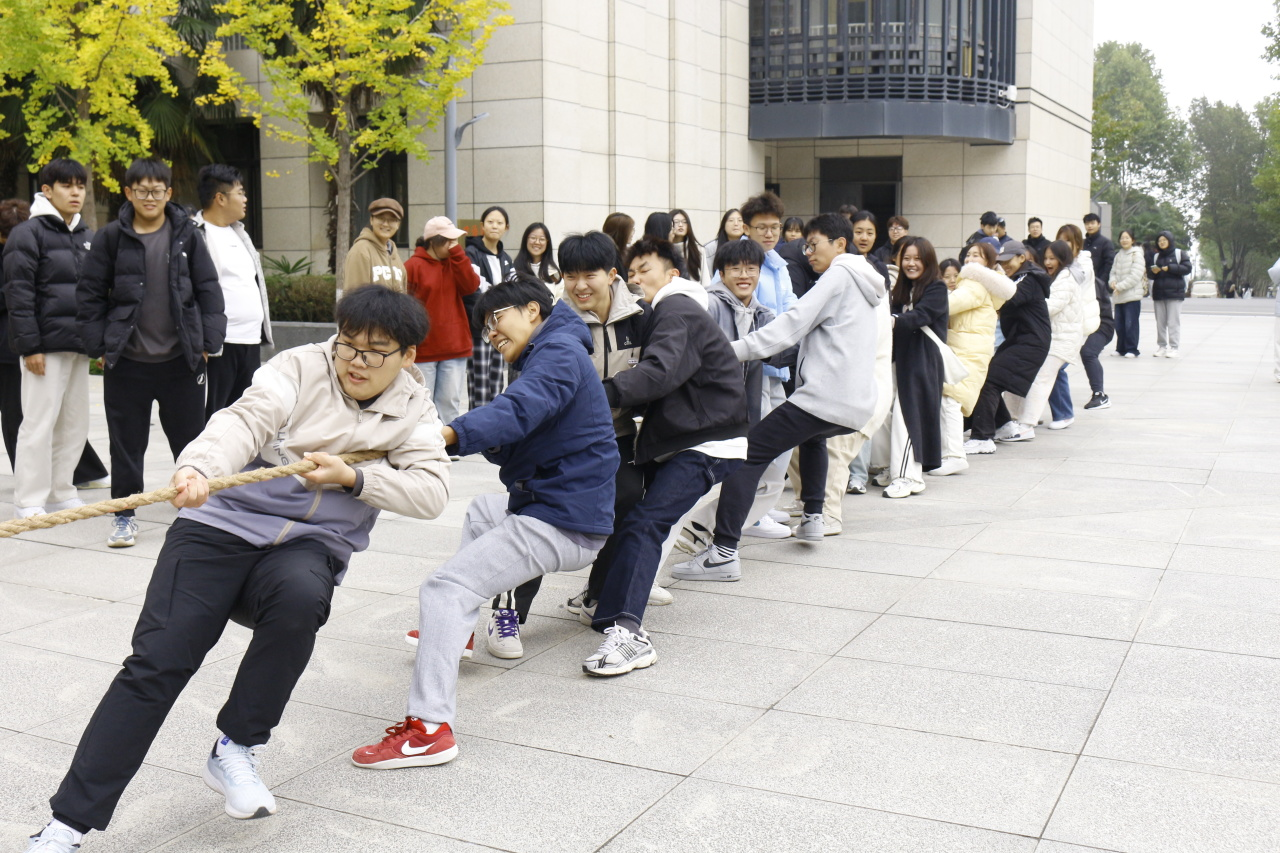 2025年10月22日beat365中文官方网站在西区五号楼广场举办了“挥动激情,放飞梦想”主题拔河比赛。本次拔河比赛以“合作、团结、拼搏、自信”为主题,旨在推进精神文明建设与身体素质综合发展,营造积极、健康、向上、良好的学院体育氛围,凝心聚力,推进学院高质量发展。