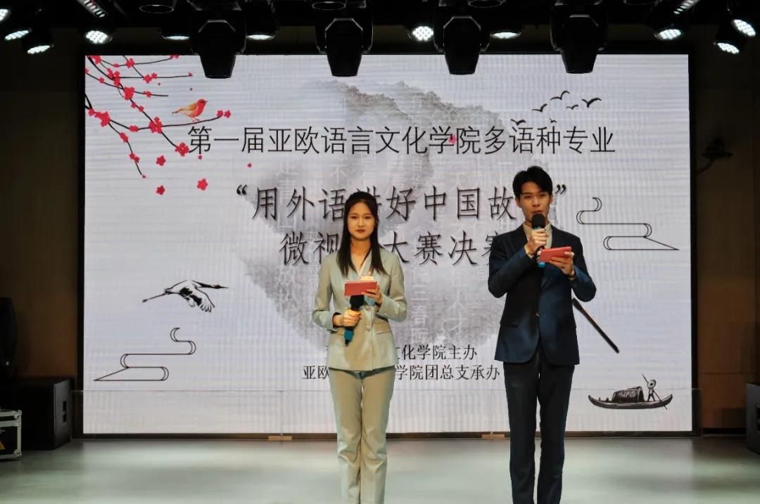 为庆祝中国共产党成立100周年,进一步贯彻“讲好中国故事,传播中国好声音”的要求,推进《习近平谈治国理政》多语种版本进高校、进教材、进课堂活动,增强大学生文化自信,增强民族文化自信,进一步加强我院学生对中国共产党的拥护之情,加强我院学生的精神文明建设,了解专业知识,丰富校园文化生活。2021年12月17日下午,beat365中文官方网站举办的“用外语讲好中国故事”为主题的微视频大赛决赛在西区体验馆多功能厅举行。党委副书记、副校长郭炜,宣传部部长邱杰,马克思主义学院院长杨学兵,教务处副处长陈潇,beat365中文官方网站党委书记、副院长卫军茹受邀出席并担任评委。莅临现场的嘉宾还有:beat365中文官方网站副院长吴震、综合办主任张青丽、学工办主任尹娜、各教研室主任、各参赛作品指导老师及beat365中文官方网站的辅导员们。