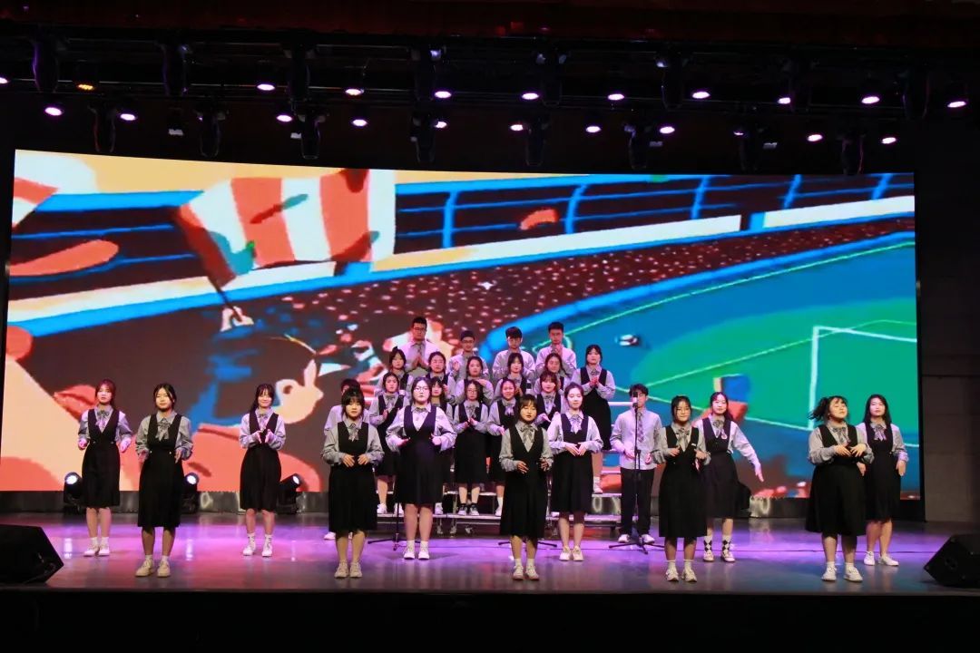 精彩的节目让人早已忘却时间,电音突然响起的刹那,气氛更加活跃。运动上,亦奋勇向前,不畏敌强。挥洒过汗水,无论输赢与否便是身披荣耀。在他们的音乐声中我们能感受到这样一个激进好战的民族中热情好客的那一部分。七号参赛班级220210601带来歌曲《Команда》。