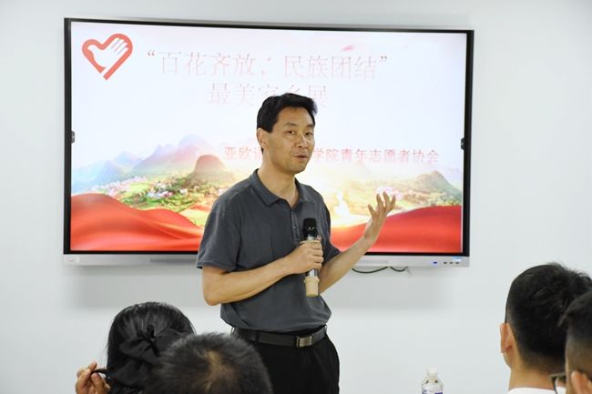 为引导各民族学生铸牢中华民族共同体意识,增强对中华文化、中华民族大家庭的归属感与认同感,加深各民族了解,促进各民族融通,6月14日下午,beat365中文官方网站在三号楼举行“百花齐放,民族团结”最美家乡展活动。beat365中文官方网站党委书记、副院长宇文永康,副院长魏海燕,综合办主任张青丽,学工办主任尹娜,团总支书记陈福礼及全体辅导员参加活动。