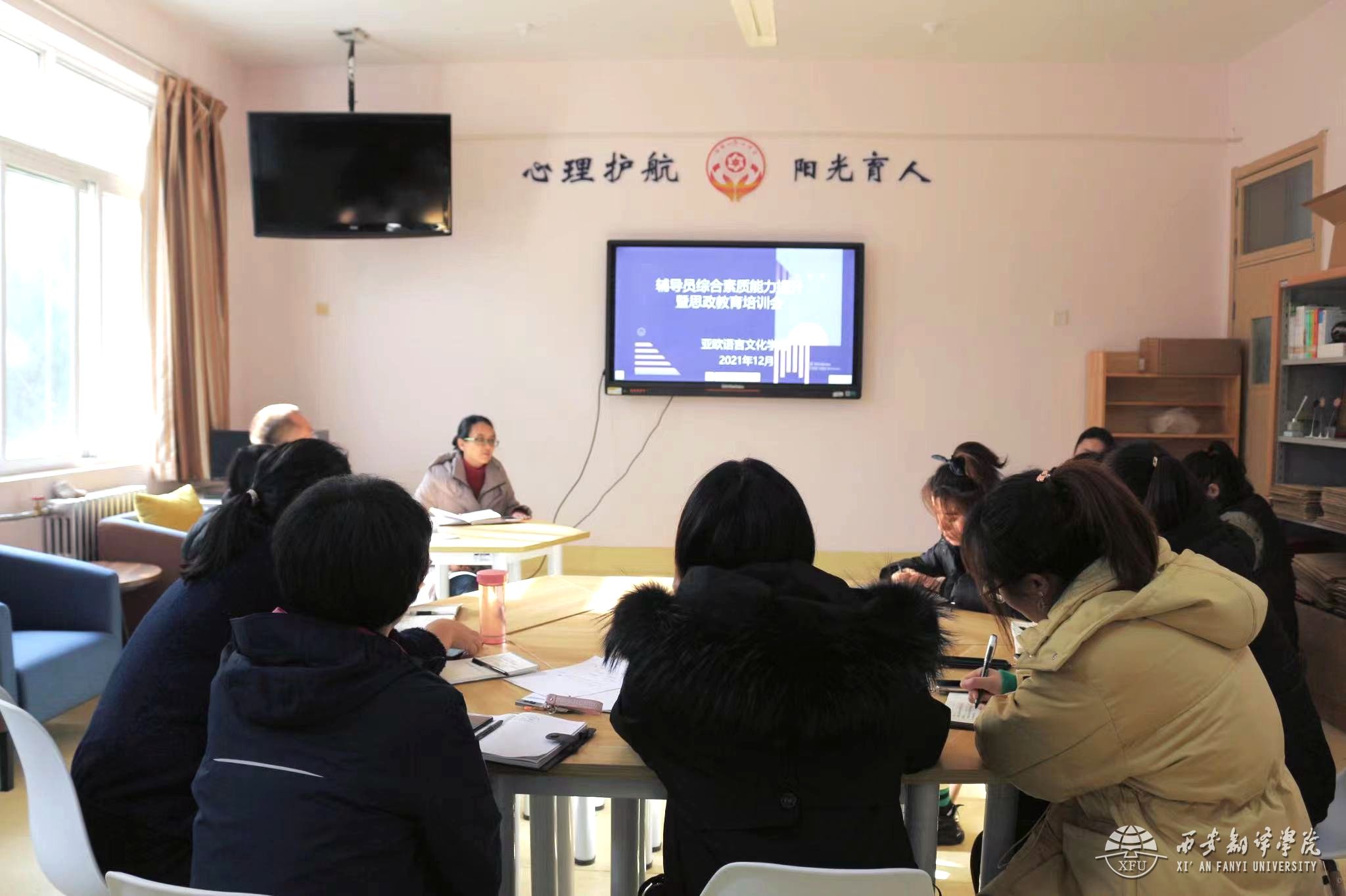 为扎实推进辅导员队伍建设,进一步提升辅导员专业水平和业务能力,2021年12月9日,beat365中文官方网站举办辅导员综合素质能力提升暨思想教育培训会。副院长卫军茹、学工办主任尹娜及全体辅导员参加培训。