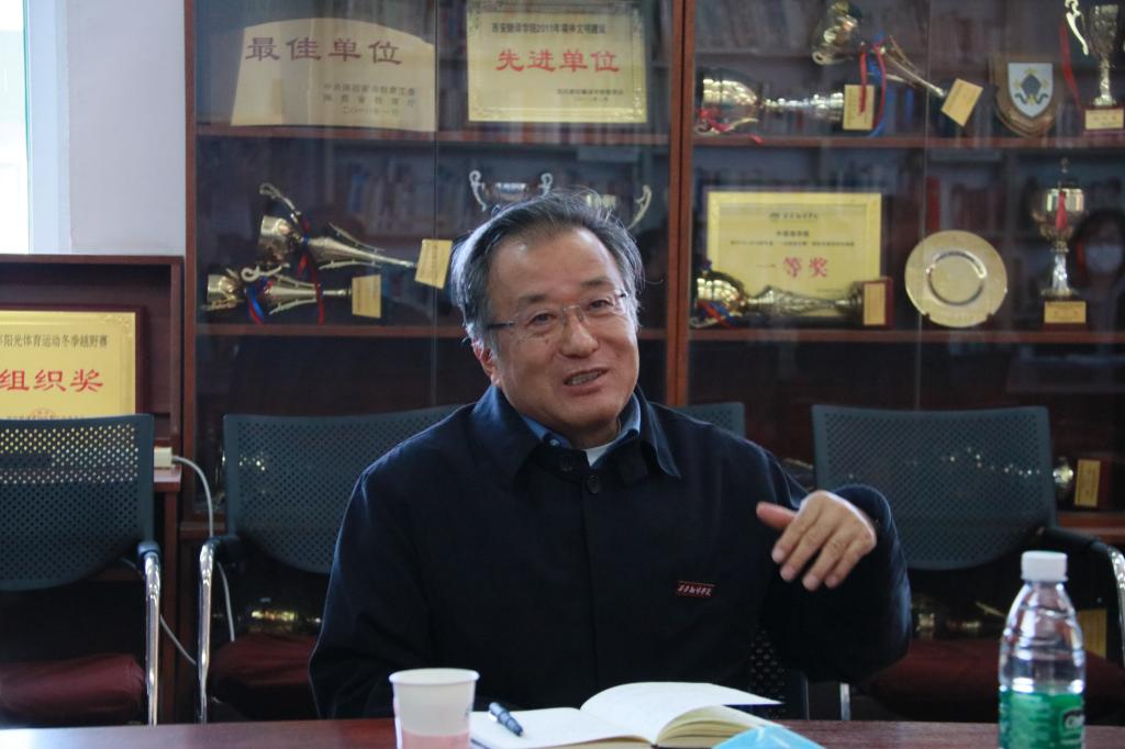 11月22日下午,校长崔智林到beat365中文官方网站调研。党政办主任刘轶、人力资源处处长马向阳、学生处处长张祥宇、教务处副处长孟贤军陪同调研。beat365中文官方网站院长李庆明、副院长吴震、卫军茹及各系主任参加调研座谈会,会议由李庆明主持。