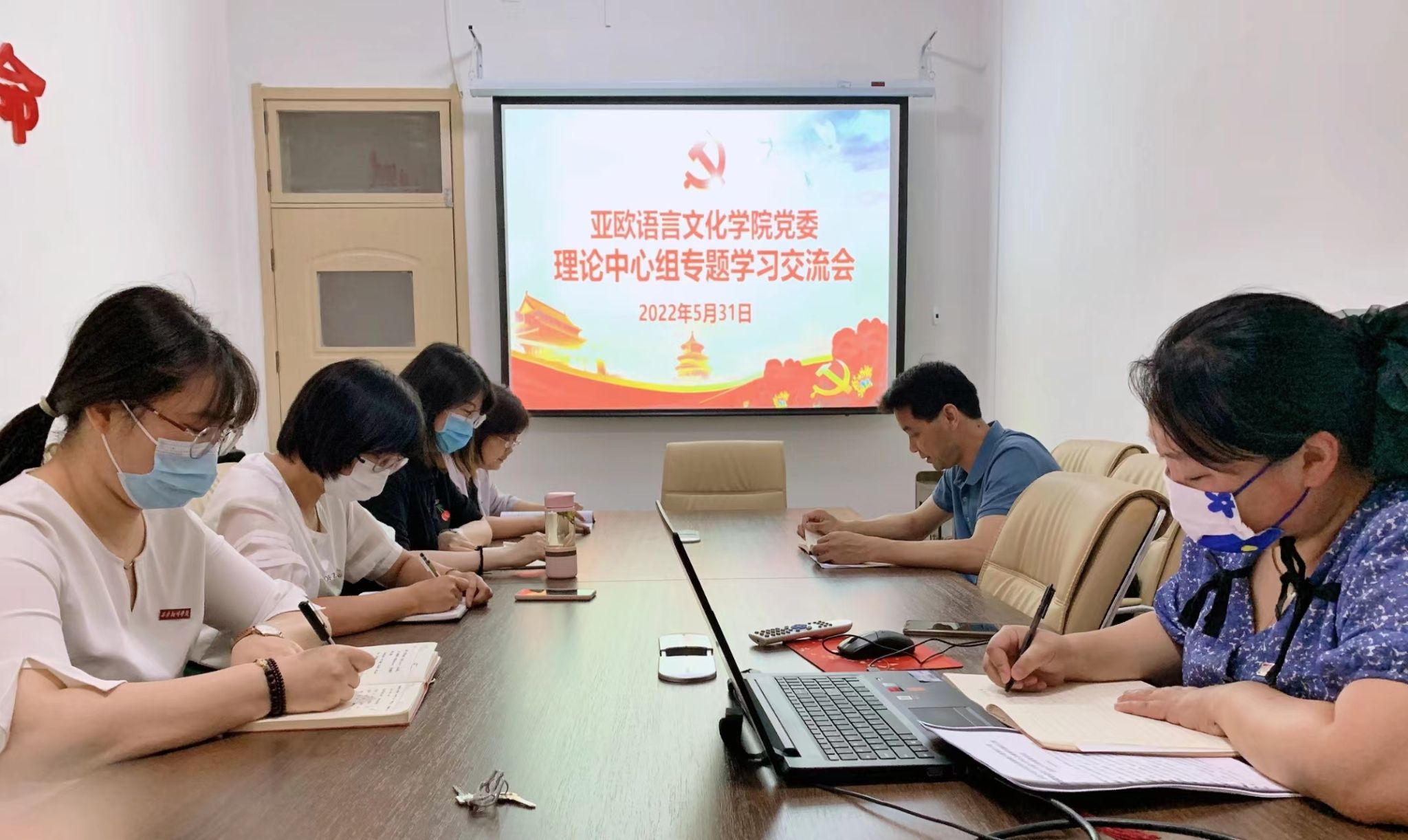 2022年5月31日,beat365中文官方网站党委理论中心学习组在西区三号楼一层会议室召开学习十九届六中全会精神专题学习交流会。会议由beat365中文官方网站党委书记宇文永康主持,亚欧党委理论中心学习组成员参加此次会议。