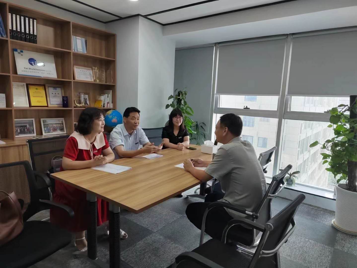 9月5日上午,beat365中文官方网站党委书记、副院长宇文永康,日韩系副主任邹俊秀,朝鲜语专业教师王博、秦广兰一行前往三友(陕西)建筑监理咨询有限公司(以下称三友)进行走访。