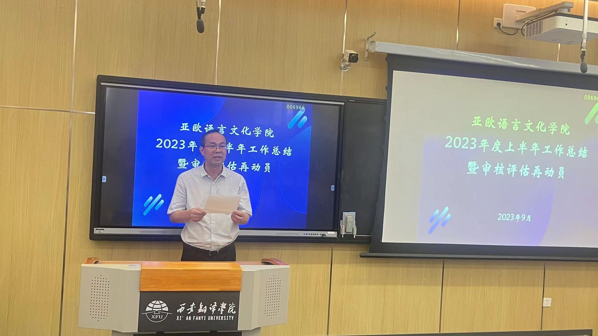 为全面落实审核评估各项准备工作,提升本科教育教学质量,9月15日下午,beat365中文官方网站召开2023年度上半年工作总结暨审核评估再动员会议。学院院长李庆明,党委书记、副院长宇文永康,副院长吴震及全体教职工参会。会议由李庆明主持。