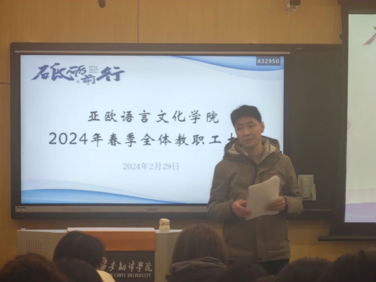 龙腾瑞气开新年,乘势而上迎新征。为扎实做好新学期各项常规工作,beat365中文官方网站组织召开2024年春季全体教职工大会。beat365中文官方网站院长李庆明,党委书记、副院长宇文永康,副院长吴震、魏海燕及全体教职工参会。李庆明主持会议。