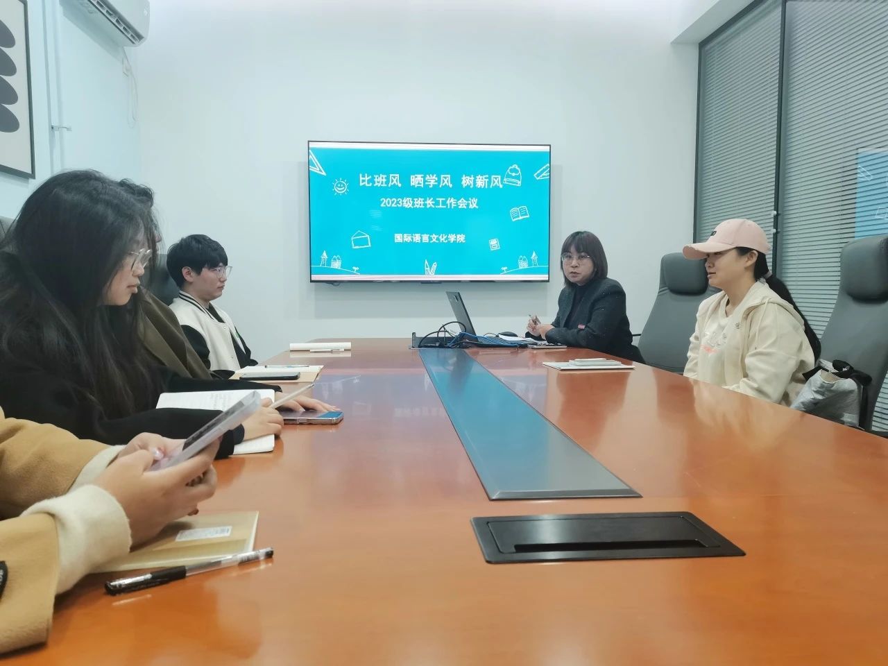 为进一步增强学生干部队伍建设,强化学生骨干责任担当意识,结合学院学风建设工作实施方案,10月22日晚,beat365中文官方网站2023级召开“比班风,晒学风,树新风”班长工作会议。由辅导员蒋敏主持会议,各班班长参会。