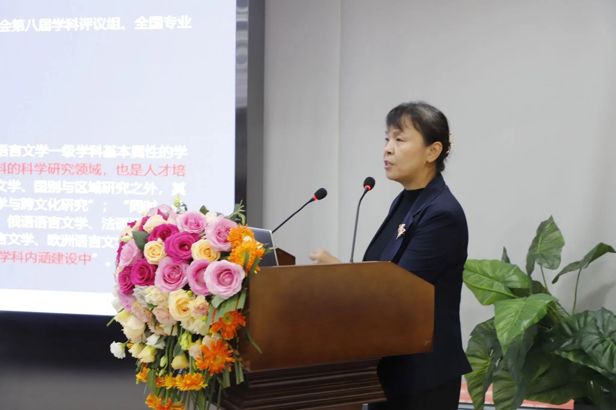 在主旨发言环节,多位国内外知名专家学者分享了他们在多语种人才培养、师资队伍建设、专业建设以及国际交流与合作等方面的研究成果和实践经验。天津外国语大学原校长、浙江越秀外国语学院校长、教育部高等学校日语专业教学指导分委员会主任委员修刚作了题为《文明互鉴视域下的多语种人才培养》的线上主旨发言;北京外国语大学教授、教育部高等学校英语专业教学指导分委员会副主任委员、中国英汉语比较研究会副会长王文斌作了题为《外语学科师生的压舱石和识别度究竟是什么?》的线上主旨发言;西安交通大学外国语学院院长、陕西高等学校大学外语教学研究会副会长、陕西省翻译协会副会长陈向京作了题为《西交大日语/法语专业人才培养创新模式探索》的主旨发言;毋育新作了题为《新文科背景下的日语一流专业建设》的主旨发言;西北工业大学外国语学院院长、全国高校美育教学指导委员会委员孙瑜作了题为《学科交叉,信息赋能——一流本科专业建设与思考》的主旨发言;西安工程大学人文社会科学学院原院长、陕西省翻译协会副会长胡伟华作了题为《全球化新语境下外语学科多语种师资队伍建设》的主旨发言;西安外国语大学欧洲学院院长、教育部高等学校德语专业教学指导分委员会委员张世胜作了题为《人工智能背景下非英外语专业建设新思考》的主旨发言。