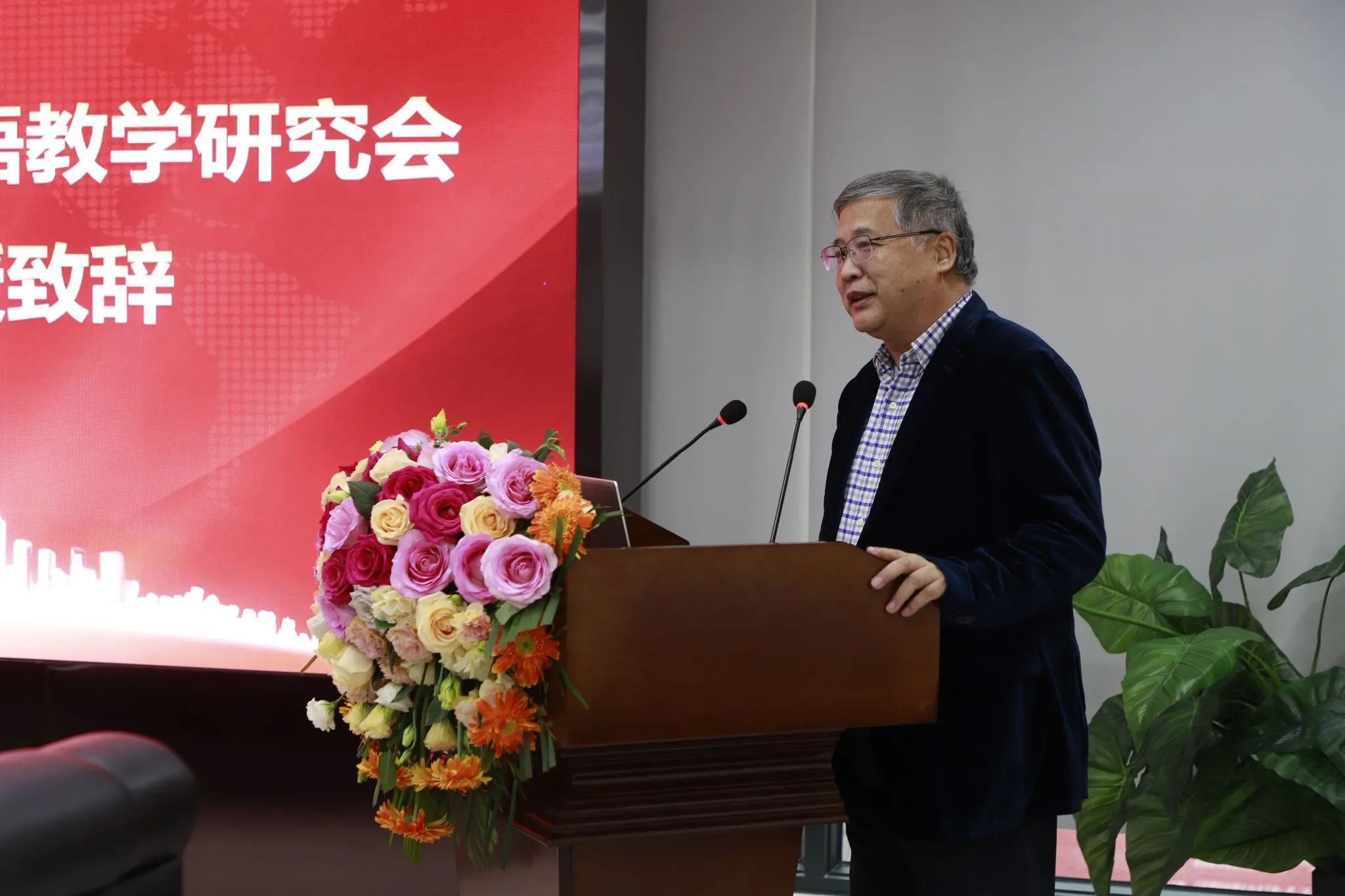 崔智林在致辞中还强调了人工智能技术迅猛发展对语言教育的深刻影响。他指出,多语种专业建设不仅关乎着语言教育的未来,更关乎着国家文化软实力的提升和国际竞争力的增强。崔智林希望,以本次研讨会的深入交流和探讨为契机,各位专家教授继续关注和支持我校多语种专业建设的发展,为我校多语种专业建设注入新的活力,为培养更多适应未来社会需求的应用型多语种人才奠定坚实的基础,并预祝本次研讨会取得圆满成功。