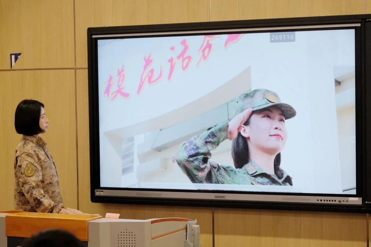 白磊磊以自身军旅生涯为例,详细讲述了从一名普通大学生到合格军人的转变过程。他强调了军旅生活在塑造坚韧不拔精神方面的重要性,指出这种精神将助力学生在未来面对挑战时更加坚定。荣博通过一部精心剪辑的视频,捕捉了军营中那些充满激情与汗水的瞬间,以及执行任务时的紧张与刺激,极大地点燃了同学们的参军梦想。杨雨茜展示了其所在的信息化部队。她介绍到这支部队肩负着保障通信网络畅通的重任,确保前线指挥部能够及时准确地掌握信息,让同学们深刻理解到军队中那些默默无闻却至关重要的贡献者。