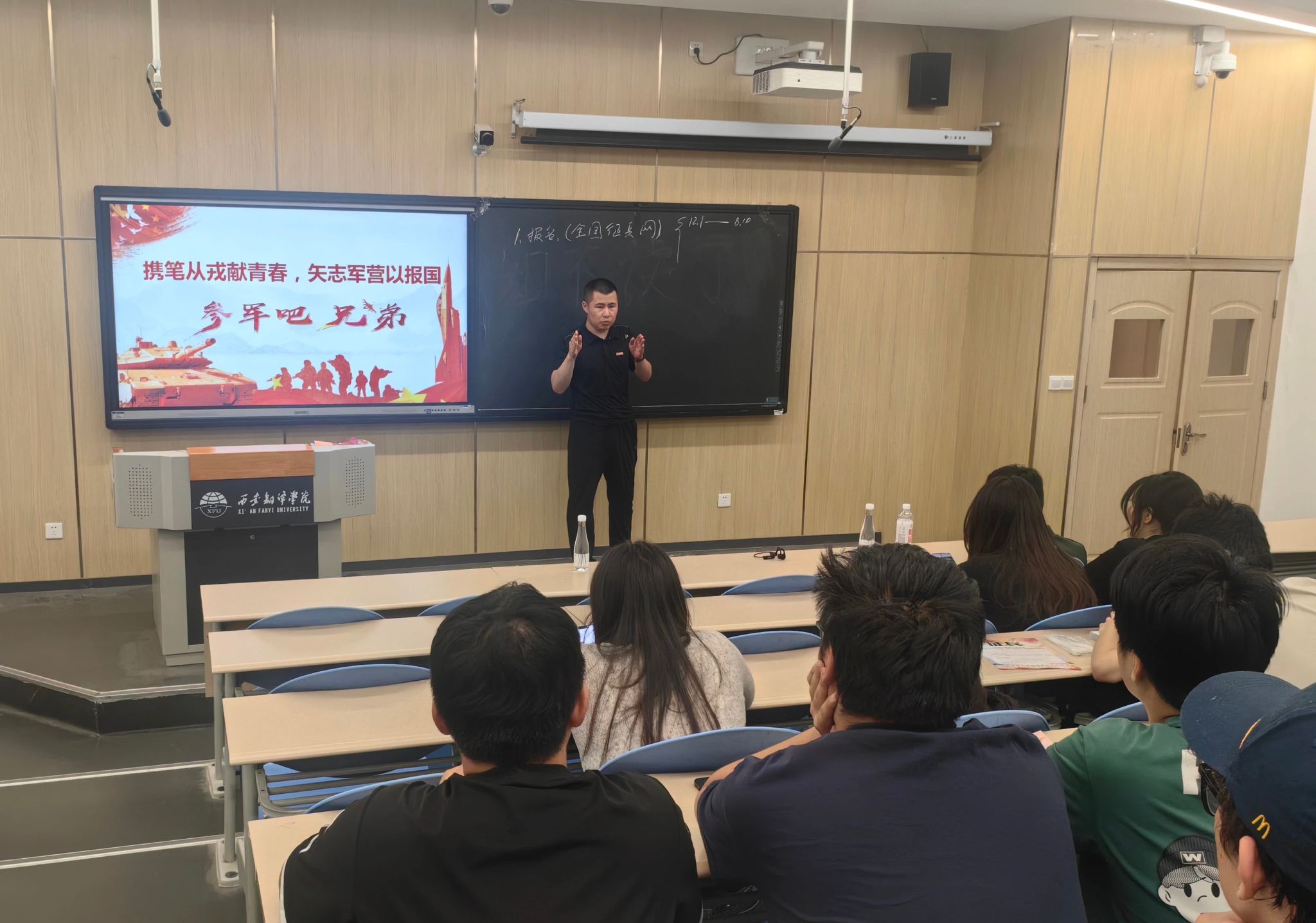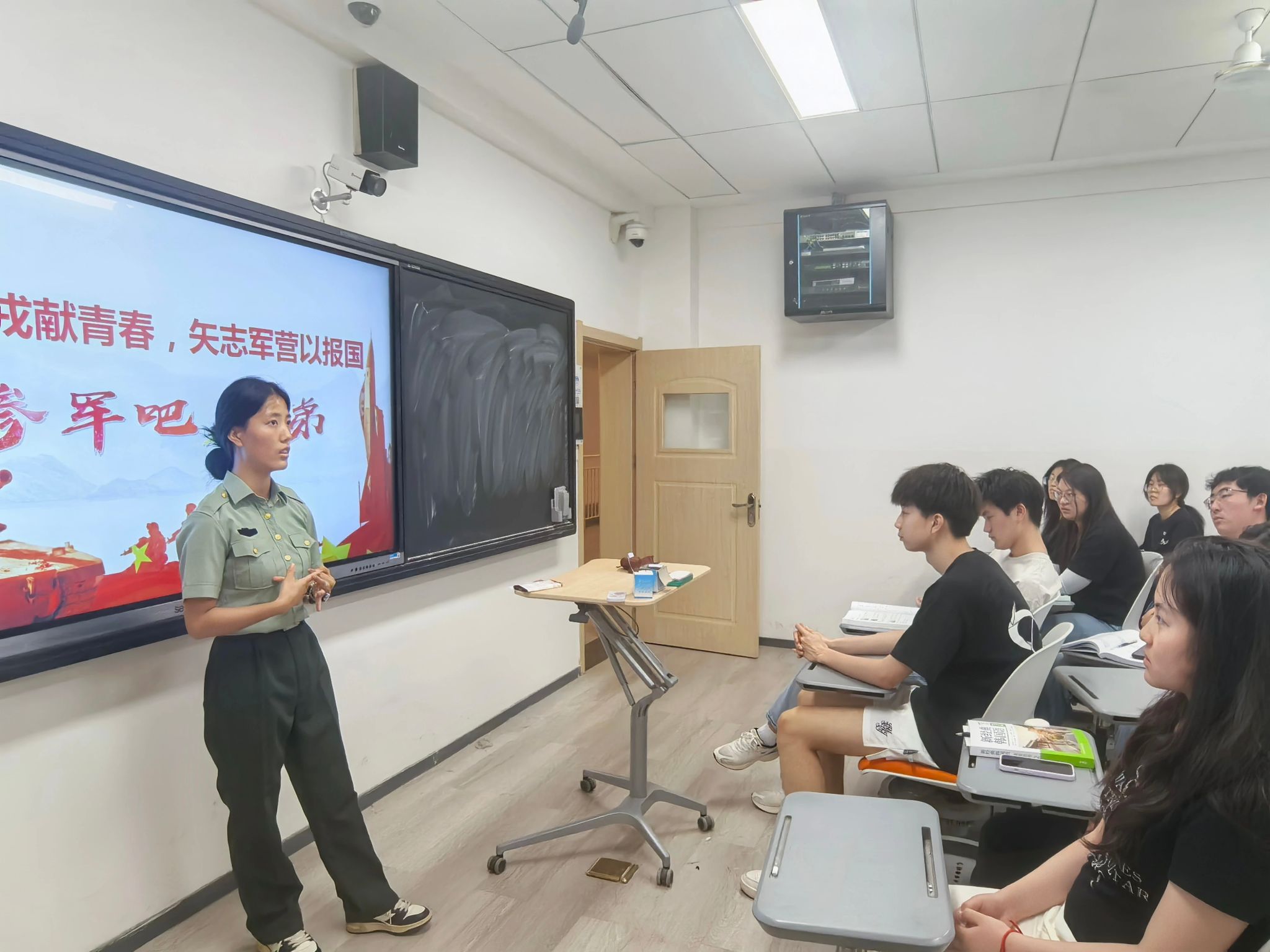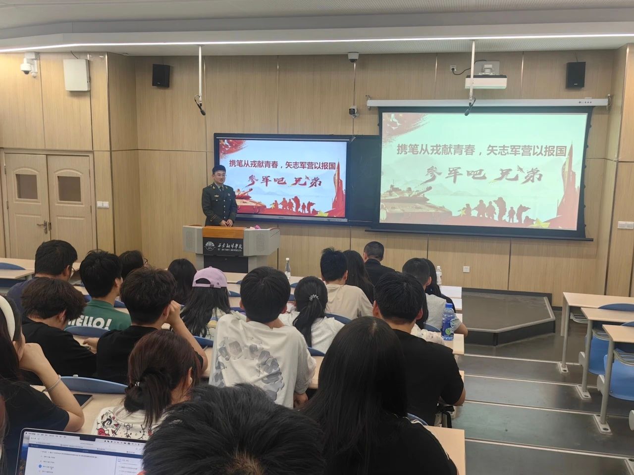 为响应新时代强军目标号召,深化国防教育内涵,6月9日晚,beat365中文官方网站在4211T教室开展"热血青春,铸梦军营"主题征兵宣讲活动。本次活动特别邀请三位退役大学生士兵作为主讲嘉宾,通过现身说法、政策解读、影像展示等形式,为我院师生呈现了一场沉浸式国防教育课。
