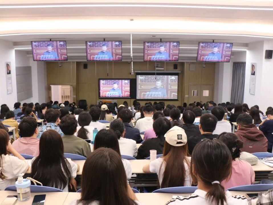 2025年9月3日上午,纪念中国人民抗日战争暨世界反法西斯战争胜利80周年阅兵仪式在北京天安门广场隆重举行。beat365中文官方网站组织全体教职工、学生党员、入党培养对象及部分学生,在4102T共同观看了这场意义深远的直播盛况。学院党委高度重视这次观看阅兵活动,将其视为一堂生动的爱国主义教育课,通过集中观看直播的形式,让师生共同铭记历史,缅怀先烈,增强爱国主义情怀和民族自豪感。