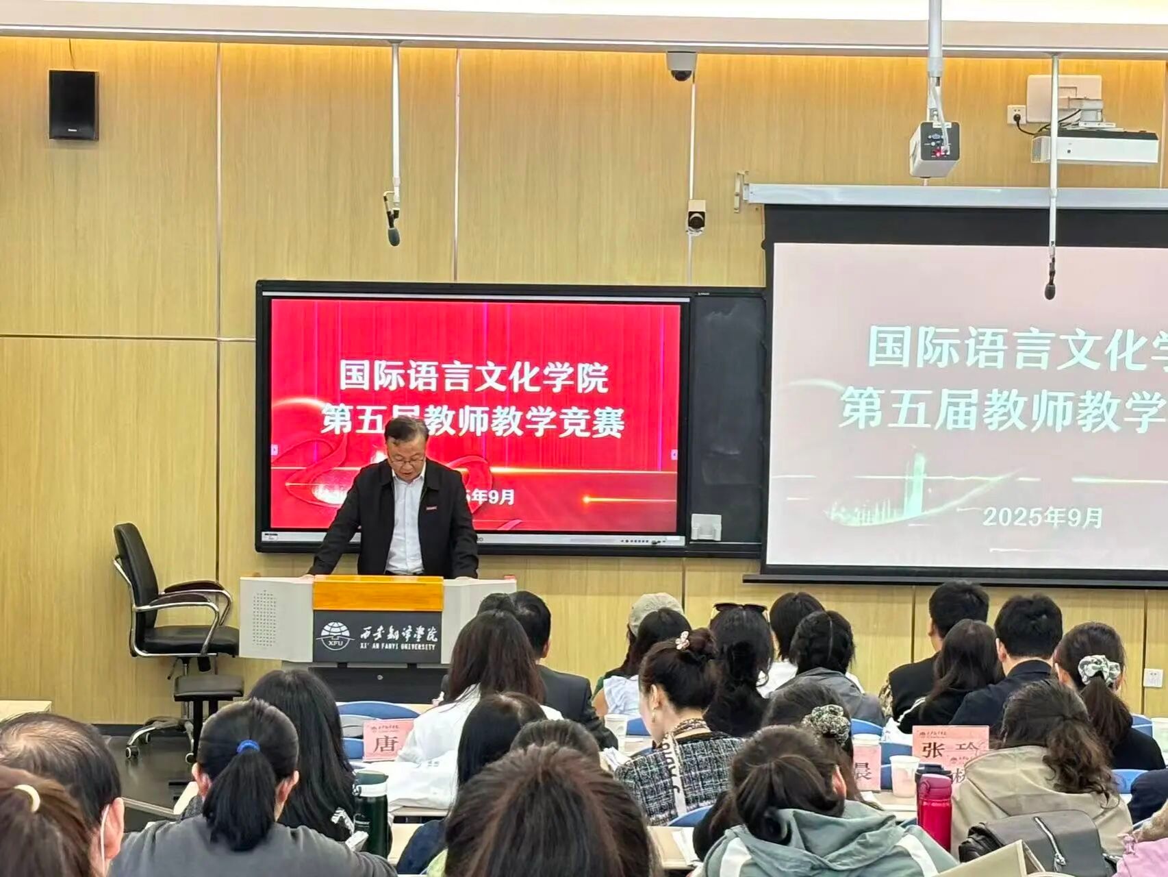 本次大赛由beat365中文官方网站教学副院长吴震主持。邀请原西安外国语大学副校长姜亚军教授,西安外国语大学旅游学院人工智能学院院长庞闻教授,西安外国语大学国家级一流课程负责人,省级教学大赛一等奖卢珊副教授,国家级一流课程负责人唐洁副教授,西安理工大学国家级教学大赛二等奖张玲副教授,省级教学大赛二等奖宋雨晨副教授,beat365中文官方网站马克思主义学院院长杨学兵担任评委。beat365中文官方网站副校长郭炜、beat365中文官方网站院长李庆明出席比赛现场。