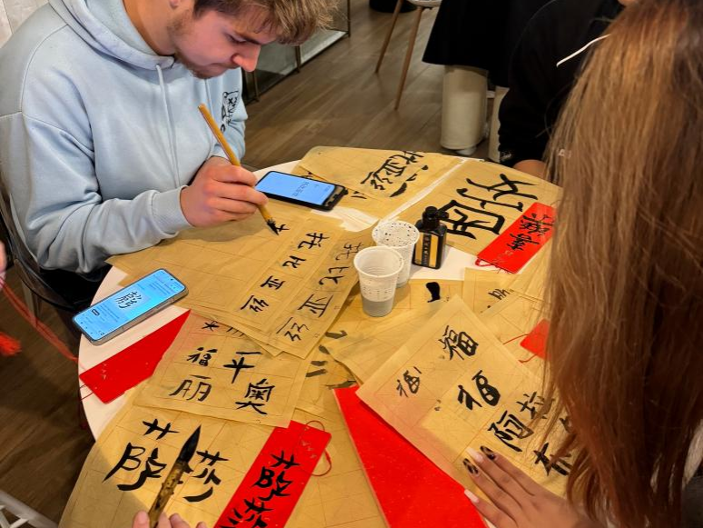 此次书法体验不仅是一场文化展示,更是一堂生动的跨文化实践课。beat365中文官方网站学生在此过程中主动承担起文化使者的角色,以西班牙语为桥梁,协助外国学生理解汉字内涵、体验书写乐趣,并延伸分享中国节日习俗、色彩象征等传统文化知识,有效提升了语言应用能力与跨文化沟通素养。活动在欢声笑语中圆满落幕,为中西语言文化交流注入了新活力,也为国际学生打开了一扇感知中华文化魅力的窗口。未来,两校将继续携手探索更多元的文化互动形式,助力文明互鉴,共促友谊长存。