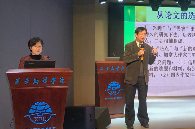 西安交通大学教授霍士富以门罗的《逃离》为例,结合自身治学经历,与全体教师分享了在科研及论文撰写等方面的经验,讲解了如何选择热点题目及从不同角度切入选题进行论文创作与发表的方法,并同老师们就项目申报及论文撰写中“文献综述”的意义和方法进行了探讨。研讨现场气氛热烈,大家各抒己见、积极交流,进一步拓宽了我校教师的学术视野。