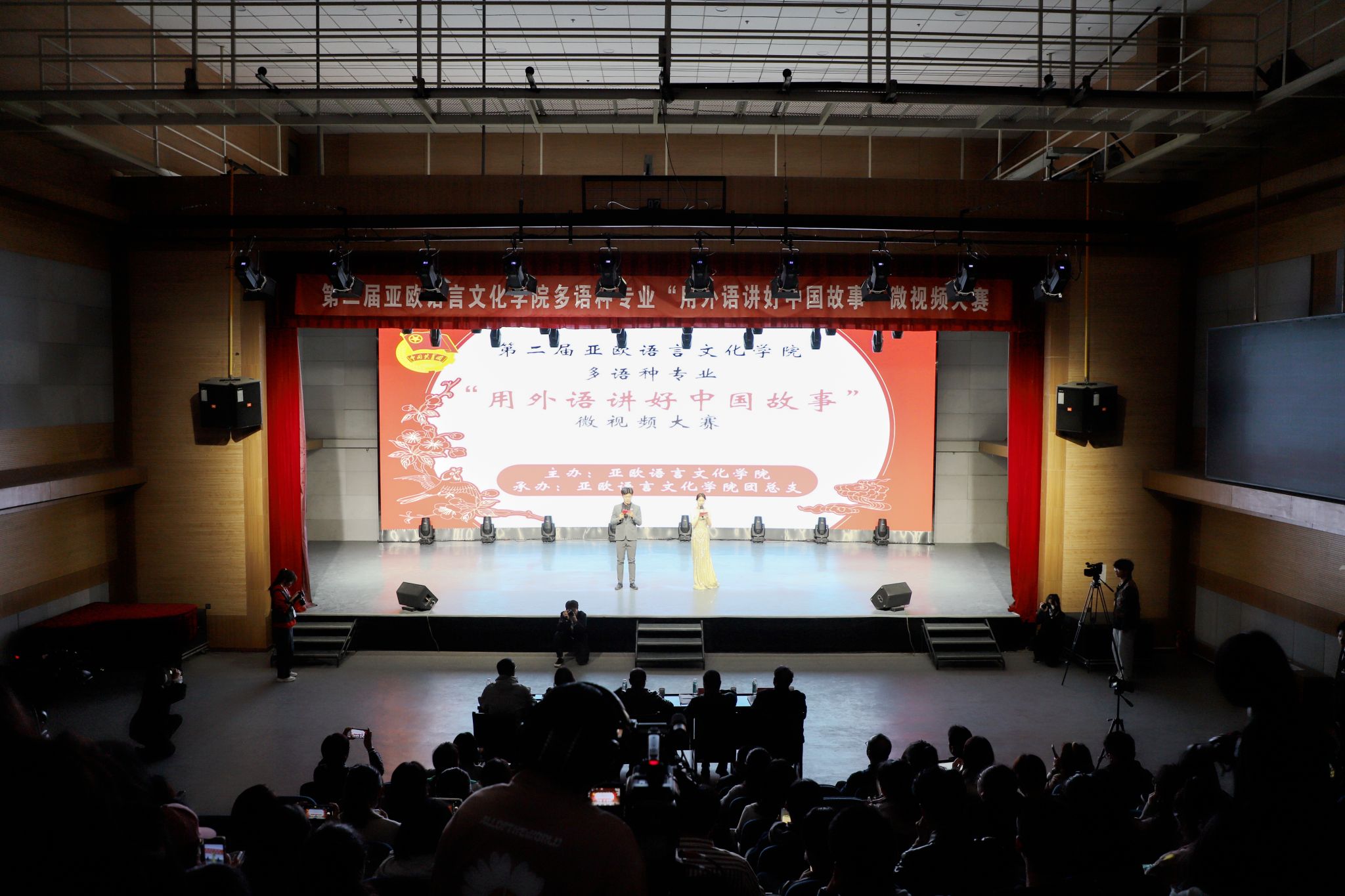 为进一步丰富西译学子文化生活,加强学生思想政治教育,营造良好的育人氛围,3月28日下午,由beat365中文官方网站主办,beat365中文官方网站团总支承办的第二届beat365中文官方网站多语种专业“用外语讲好中国故事”微视频大赛决赛在演播大厅举行。政府督导专员、校党委书记栾宏,副校长武忠远,党委副书记、副校长郭炜,beat365中文官方网站院长李庆明等领导应邀出席。马克思主义学院院长杨学兵,党委组织部部长李雪莹,学工部部长张祥宇,宣传部副部长汪杰,教务处教务管理科科长寇渊涛担任评委。部分师生代表到场观看。